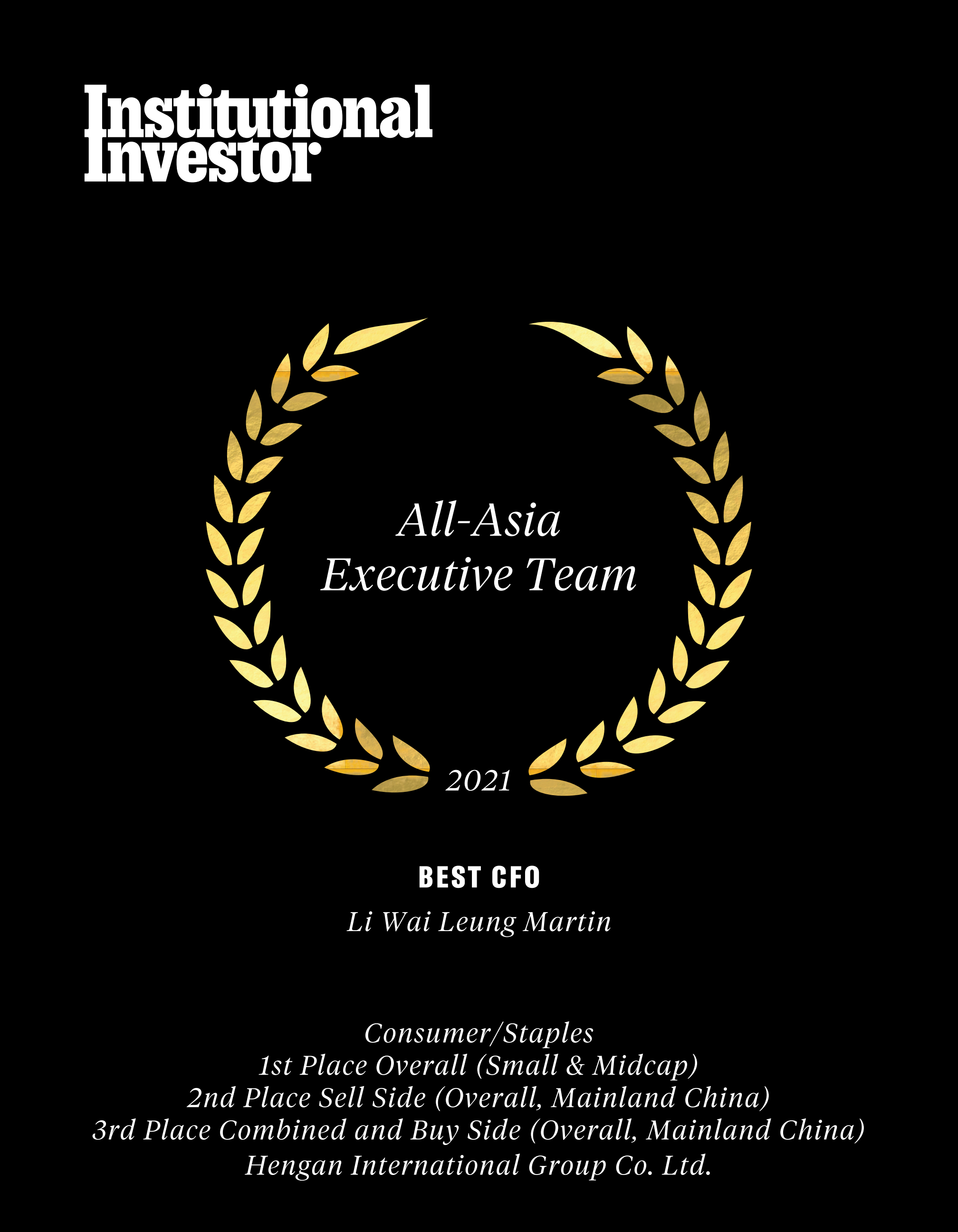 近日,国际权威财经杂志《机构投资者》(Institutional Investor)公布了“2021年度亚洲区公司最佳管理团队”(2021All-AsiaExecutiveTeam)评选结果,彩神国际集团蝉联“受尊崇企业”名衔及必需性消费品类别组别中的多项殊荣,包括“最佳投资者关系活动”、“最佳环境、社会及企业管治(ESG)”、“最佳行政总裁”许连捷先生、“最佳财务总监”李伟樑先生。